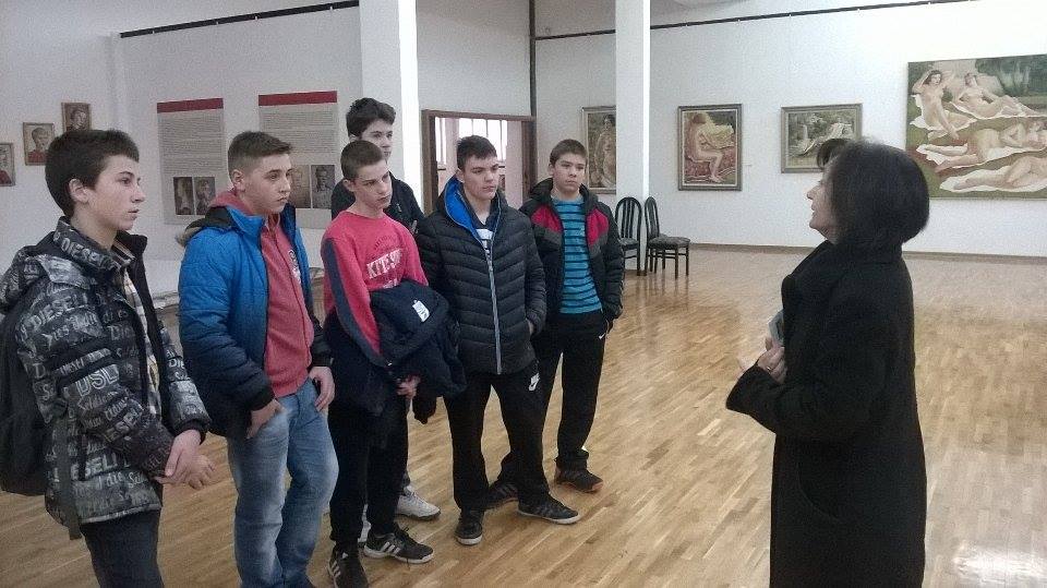 Кустос галерије, Анђелка Радосављевић, је на врло занимљив начин, примерен узрасту ученика, успела да нам одржи пажњу нешто дуже од сат времена, да нас заинтересује и одговори на сва питања. Својом причом успела је да нас одведе у давну 1939. годину, када су ове слике настале. Ученици су помно пратили, јер у овој дивној причи, поред главног актера, сликара, учествују деца. Сазнали смо много о времену када су слике настале, о моди тога доба, васпитању и становништву нашег града.